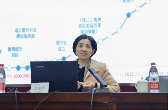 会上,南沙区人大常委会副主任冷瑞华作《南沙,广州的未来之城》专题报告,结合贯彻落实《南沙方案》,从“一个战略定位、两个阶段目标、三个先行启动区、四项保障措施、五大重点任务”五个维度,形象生动地描绘出南沙的发展历程与锦绣未来,启发全体干部、教师从党和国家事业发展全局的高度深刻认识南沙深化面向世界的粤港澳全面合作的重要意义,切实把思想和行动统一到习近平总书记、党中央决策部署上来,牢记习近平总书记对扎实推进广东高质量发展的殷殷嘱托,把握历史机遇,把智慧和力量凝聚到推动学院各项事业发展上来,在贯彻落实《南沙方案》中促进学院体育教育高质量发展。