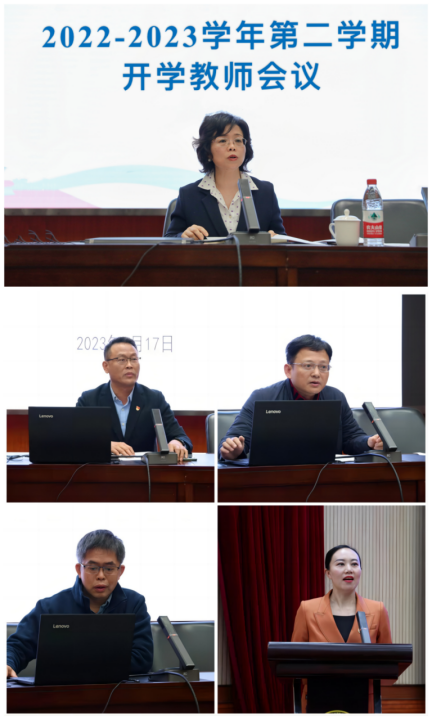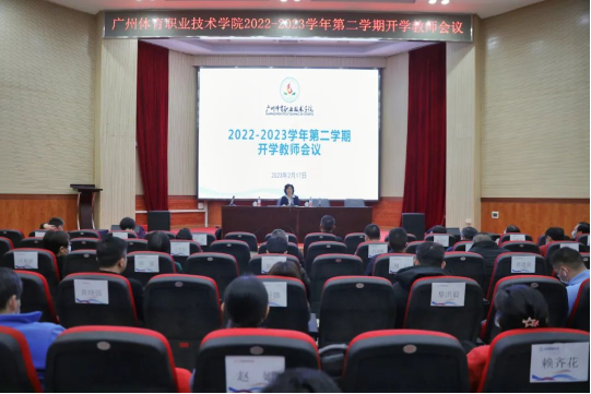 教务处处长赵立江、学生处处长黄克铭分别部署了新学期教学、学生管理工作,信息中心主任伍晓峰结合省教育厅、市教育局文件要求对正版软件使用规定进行解读。在广东省第六届高校(高职)青年教师教学大赛获奖教师专题分享环节,勇夺总决赛文科综合组冠军并获广东省“五一”劳动奖章推荐资格的王琪老师,立足课堂教育教学根本,分享了青教赛备赛参赛的宝贵经验,广大教师获益良多,教师大会取得了预期效果。2023年是全面贯彻落实党的二十大精神的开局之年,是实施 “十四五”规划承上启下的关键之年,是推动高质量发展的奋进之年。路虽远,行则将至;事虽难,做则必成。在学院党委的领导下,全体教职工将坚持不忘初心、砥砺前行,凝聚教育改革共识,以奋进之笔谱写学院建设华美篇章,推动体育职业教育高质量发展迈上新台阶、创造新佳绩。