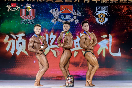 体育运动系王晓昊(左二)获得传统健美全场亚军