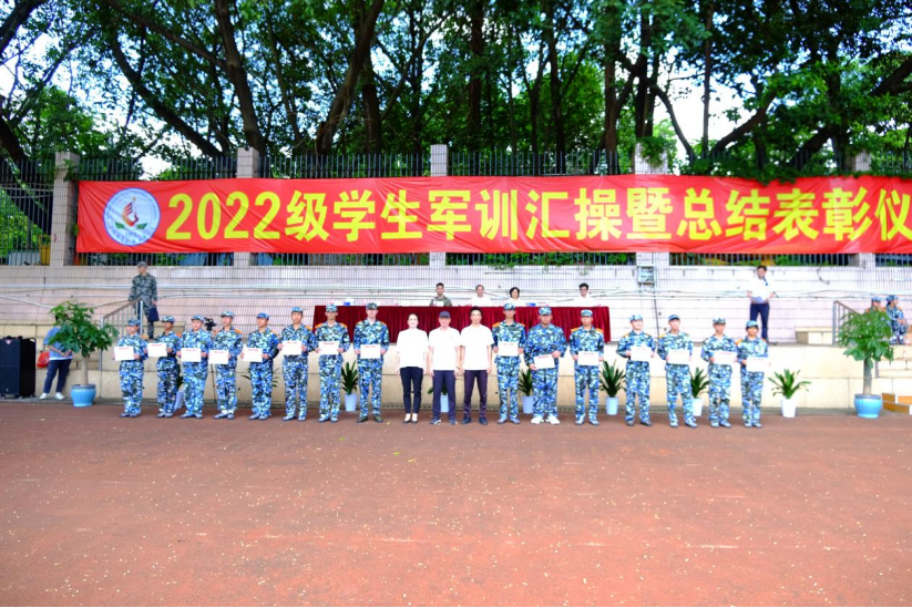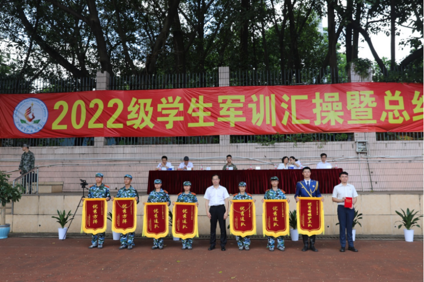 本网讯 7月7日上午,广州体育职业技术学院在东校区田径场举行2022级学生军训汇演暨总结表彰大会,历时14天的军事训练圆满落下帷幕。学院院长李国平、副院长张苹、天河区人民武装部参谋罗家豪以及学生处、体育运动系、体育产业系、体育保健与康复系负责人、全体带训班级辅导员出席大会。