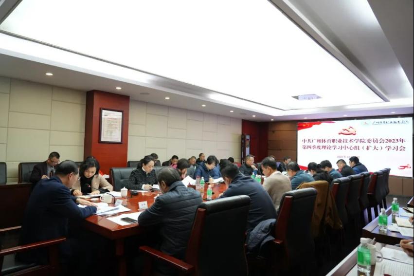 本网讯 12月21日上午,中共广州体育职业技术学院委员会召开2023年第四季度理论学习中心组(扩大)学习会,深入学习习近平总书记在北京河北考察灾后恢复重建工作时的重要讲话精神,习近平总书记在上海、江苏盐城考察时的重要讲话精神,习近平总书记关于宣传思想文化工作的重要指示精神,以及《中华人民共和国行政复议法》。学院党委副书记、院长李国平,党委副书记黄丽仪,副院长崔明,各部门党政负责人参加了会议。会议由李国平主持。