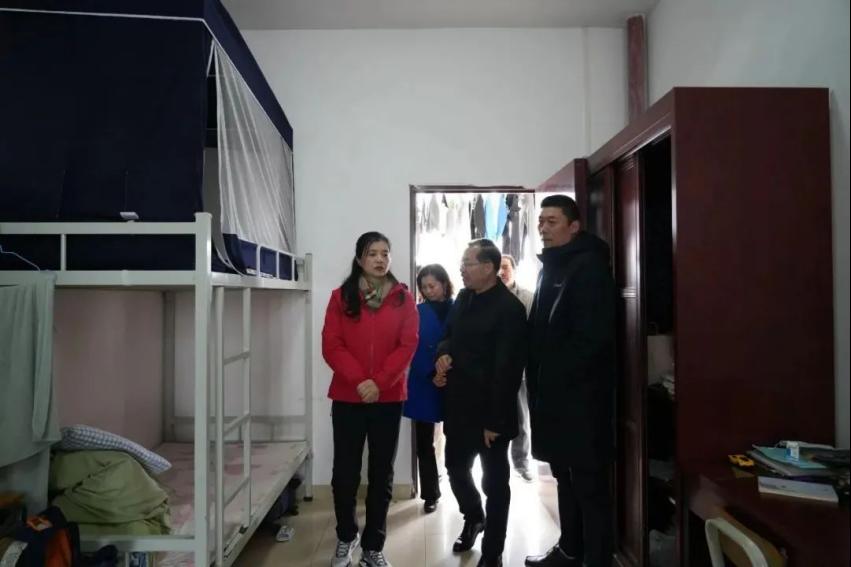 本网讯 1月25日,广州市体育局党组书记、局长谭爱英带队来到广州体育职业技术学院开展年末安全检查工作,重点检查了学院食堂、运动员宿舍等场所,切实筑牢校园安全屏障,学院院长李国平带领学院班子成员陪同。