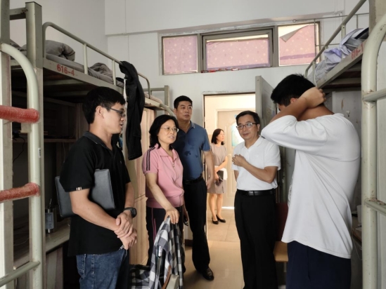 会后,林昭雄、张苹、崔明带队到学院学生宿舍、西区饭堂等重点部位开展国庆节前安全检查。检查过程中,对加强学生宿舍门禁管理和进出登记、宿舍卫生管理、建筑物外墙安全等提出了要求,请各有关部门结合场馆改造和国庆假期重要阶段特点,抓好安全隐患排查,及时消除安全隐患。