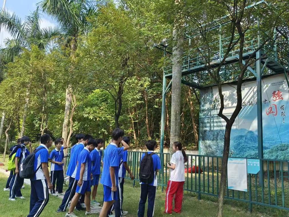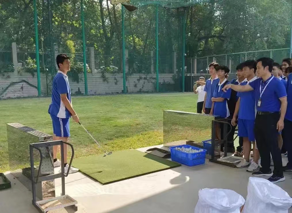 参观完校史馆后,深圳智理技工学校的学生在学院2023级休闲体育专业学生的带领下参观了学院东区校园,包括冠军林、绳攀训练场和高尔夫练习场,并在高尔夫练习场进行了挥杆体验。