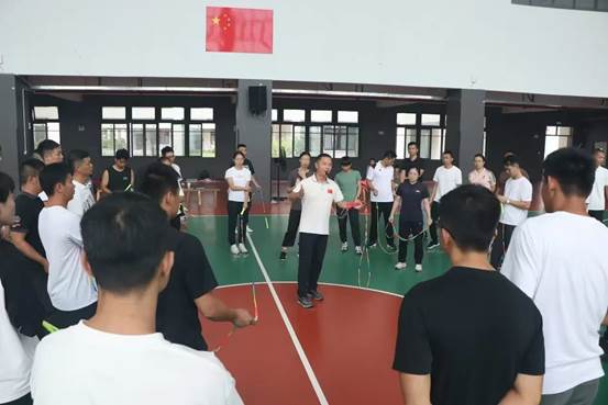 本网讯 为贯彻落实体育浸润行动计划,助力“双百行动”,赋能基础教育高质量发展,10月26日至27日,广州体育职业技术学院与揭阳市揭东区教育局联合主办的2024年揭阳市揭东区体育浸润行动计划初级跳绳教练员培训班在揭东区第一初级中学开班,揭阳揭东区50余名中小学体育教师参加了此次培训。