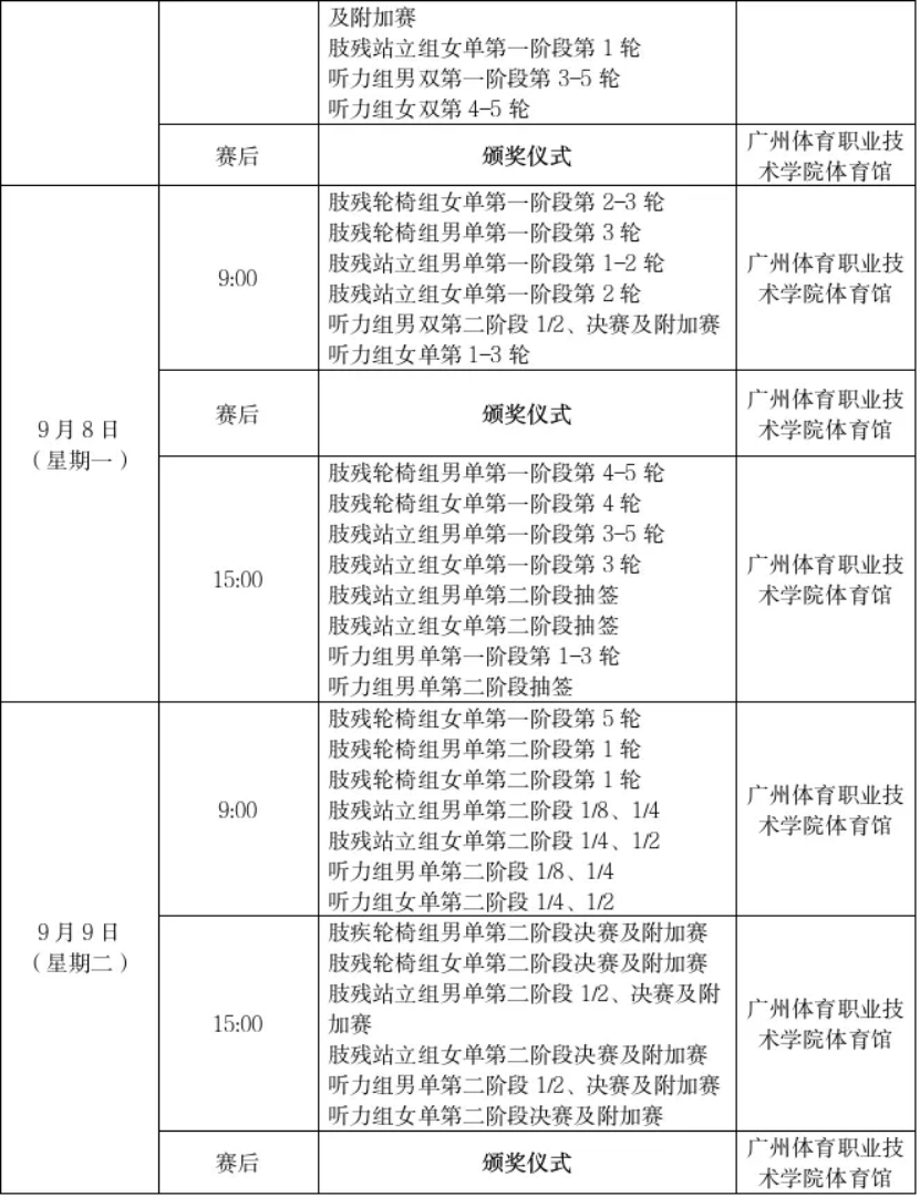 赛事承办地广州体育职业技术学院,不仅拥有符合标准的现代化体育场馆设施和丰富的赛事组织经验,对比赛场馆、运动员通道、卫生间等均进行了高标准的无障碍设施升级改造,确保为所有参赛运动员、教练员及观众提供安全、便捷、温馨的环境。此前,广州体职院已于7月31日-8月1日举行了残特奥会乒乓球测试赛暨2025年广州市残疾人乒乓球邀请赛,对赛事组织、安全保障、医疗保障、志愿服务等全流程进行了有效验证,为即将到来的残特奥会乒乓球(大众组)比赛奠定了良好的基础。