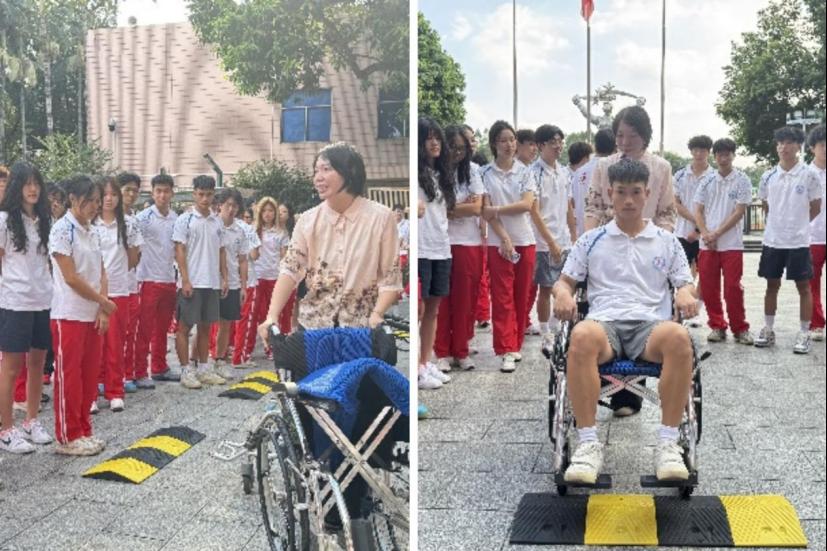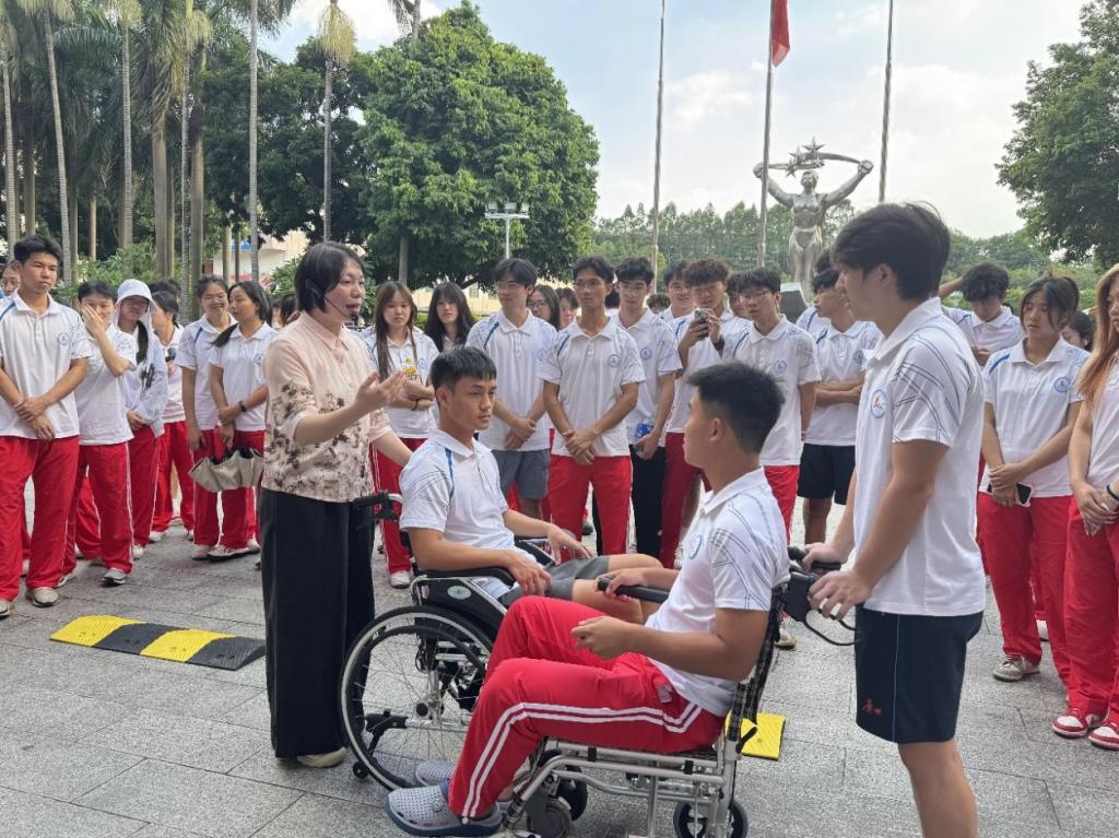 理论之光需要在实践沃土中绽放。转入室外实操阶段后,李小娜老师带领团队来到模拟赛场进行全流程推演。烈日下的场地被改造成微型竞技场:轮椅坡道和阻碍物成为“必考科目”,要求志愿者掌握黄金发力角度与推行速度控制;大小不一的轮椅,训练志愿者学习如何快速打开和收纳。在开阔的空间里,志愿者们得以将刚刚学到的知识付诸实践。他们反复演练各种服务动作,力求做到娴熟自然。李小娜老师则在一旁耐心指导,及时纠正错误姿势和不当操作,确保每位志愿者都能熟练掌握服务技能。