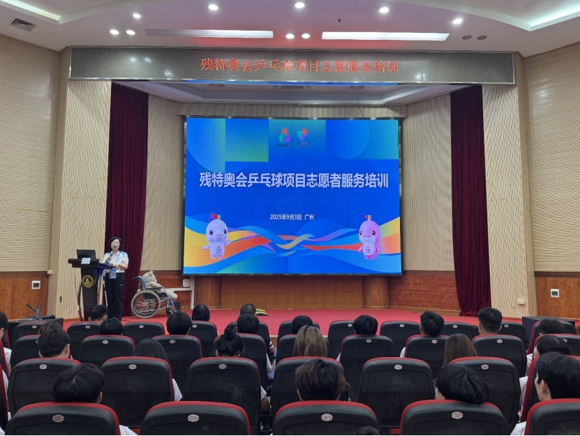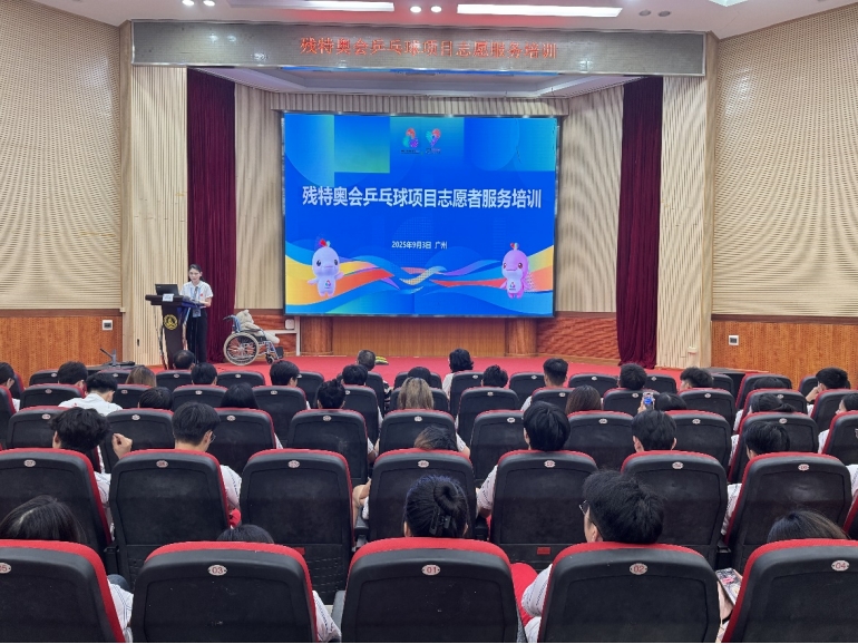 本网讯 金秋九月,活力迸发。为高标准做好2025年残特奥会乒乓球(大众组)的志愿服务保障工作,9月3日下午,一场高规格、多层次的专业培训在广州体育职业技术学院西区阶梯会议室正式启动,天河区残疾人联合会邀请十五运会和残特奥会志愿服务培训通用讲师李小娜为238名“小海豚”志愿者主讲。残特奥会乒乓球竞赛项目副主任、副院长张苹,广州市天河区残疾人联合会理事长朱玉标参加会议,本次培训由残特奥会乒乓球竞赛项目志愿服务处处长明泽雨主持,汇聚了赛事组委会领导、行业专家与一线志愿者团队,通过“理论+实践”双轨并行的模式,为打造专业化、人性化的服务队伍注入强劲动能。