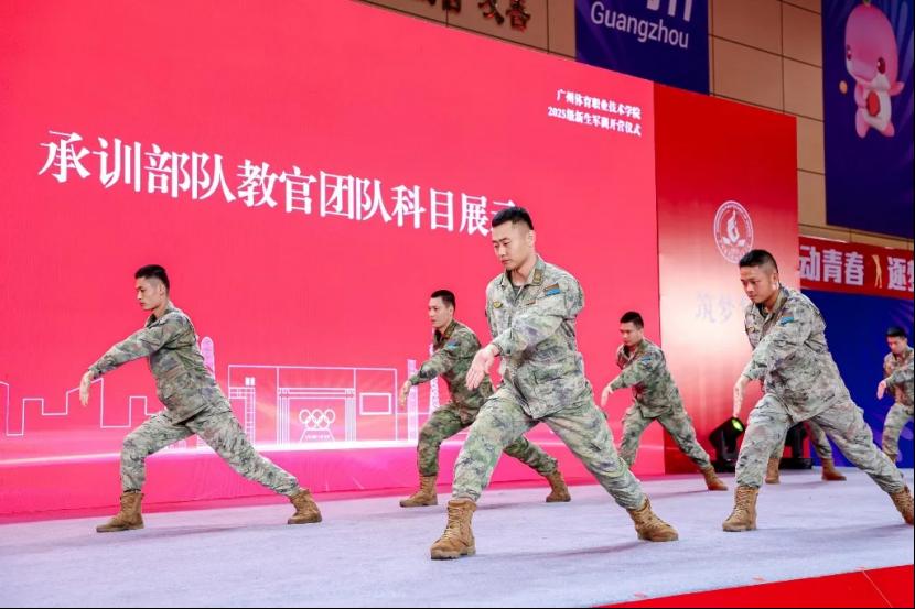 承训教官团队进行了精彩的拳术表演,整齐的动作、过硬的本领赢得了全场热烈掌声,充分展现了新时代军人的飒爽英姿和优良作风。