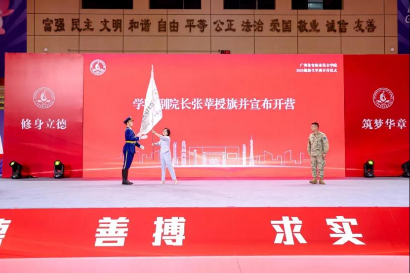 张苹希望同学们深刻认识军训作为大学第一课的重要意义,发扬学院“顽强拼搏、团结协作、超越自我、爱国奉献”的冠军精神,以饱满热情投入训练,展现广州体职院学子的优良风貌。