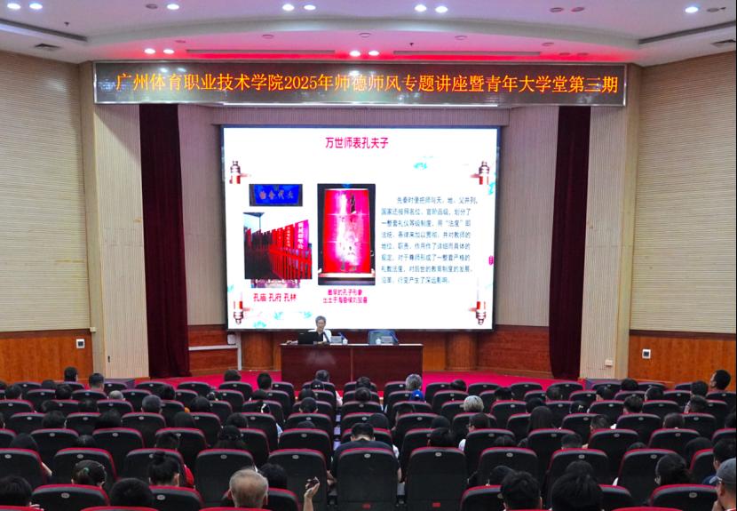 本网讯 为深入学习习近平总书记关于教育的重要论述以及对教师工作的重要指示批示精神,大力弘扬教育家精神,切实加强教师队伍师德师风建设,9 月17日下午,广州体育职业技术学院在西校区阶梯会议厅开展2025年师德师风专题讲座暨青年大学堂(第三期)。本次讲座特邀广州职业技术大学马克思主义学院党总支书记、教育部全国高校思政课名师工作室负责人、“全国高校黄大年式教师团队” 领衔名师、广东省教学名师曹群教授主讲,讲座由学院党委委员、纪委书记林昭雄主持,学院全体教师(教练员)及组织人事处、教务处、学生处、团委、继续教育部、技能实训中心全体人员参会学习。