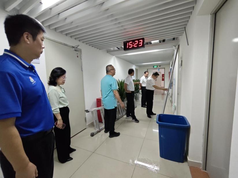 检查组先后深入体育馆、学生宿舍、陆上跳水馆、武术训练馆、篮球训练馆、游泳馆、运动员公寓、食堂、电房等关键场所。每到一处,检查组均细致查看安全措施落实、设施设备运行、环境卫生维护等情况,重点围绕用电安全、消防安全、食品卫生安全、设施设备安全及假期值班值守安排等核心环节,全面排查潜在安全隐患。