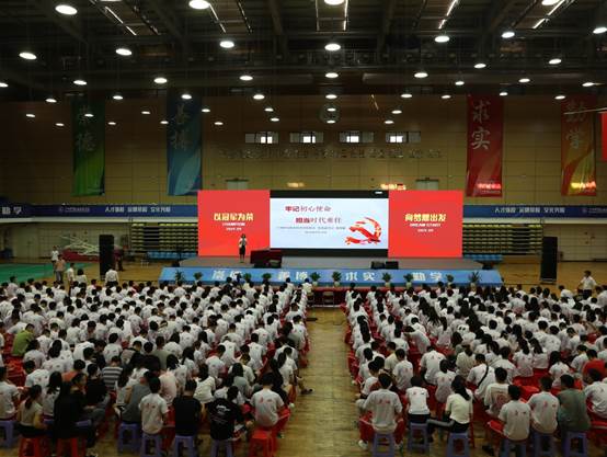本网讯 每学期开学院系领导给学生上“第一堂思政课”是我院党建思想政治工作的一项重要制度,各位院系领导走上讲台,为学生上大课、讲大势、传大道,让他们了解当前国际国内的形势,对他们理性规划自己的职业生涯具有指导意义。2019年9月12日上午在广州体育职业技术学院体育馆举行的2019级新生入学典礼上,黄德敏院长以“牢记初心使命,担当时代重任”为题,给679名2019级新生上了入学的“第一堂思政课”。