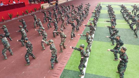 同学们以昂扬的斗志、整齐划一的动作展示了新时代大学生的风采,这也是全体军训教官和学生在14天的军训中刻苦训练的集中体现。
