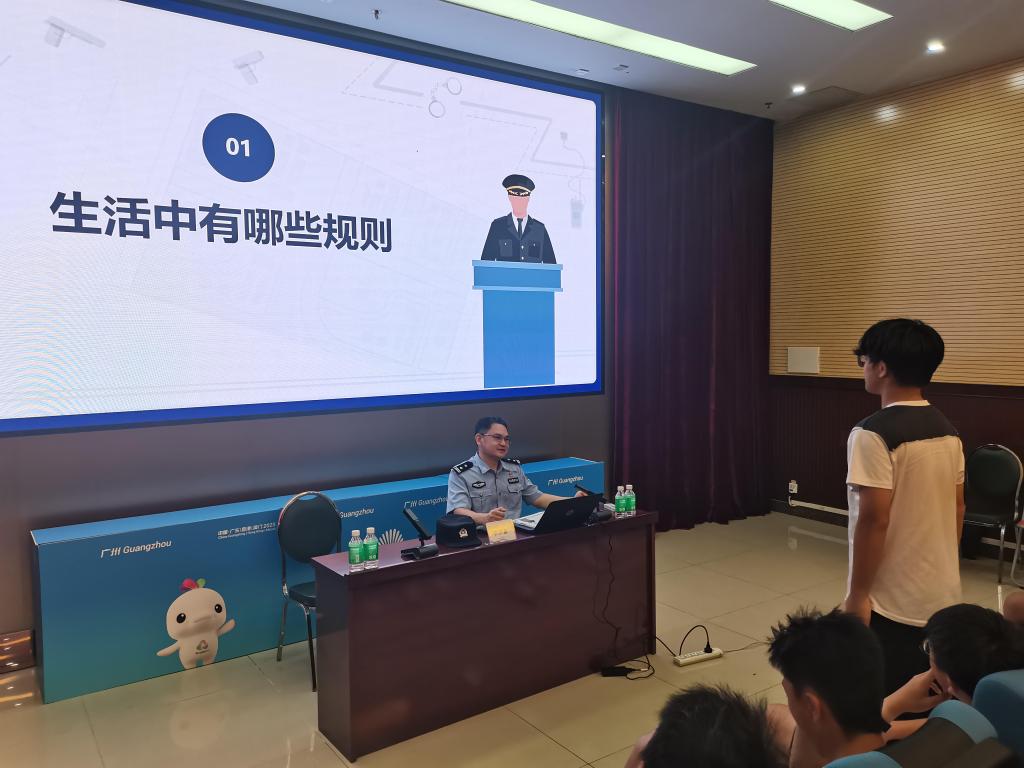 讲座开始前,大家共同观看了天河公安分局民警日常工作、训练的宣传片,一帧帧画面让师生们对人民警察的工作肃然起敬,深知我们的和谐幸福生活得益于人民警察的辛勤付出。