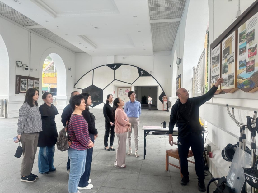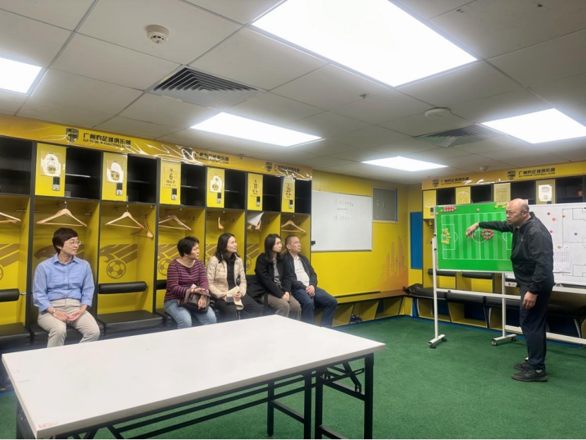 在越秀山体育场管理部部长的带领下,沿着“历史记忆——现代升级”的参观路线,开启沉浸式学习之旅。大家通过历史照片,直观了解到越秀山体育场作为“华南足球圣地”的发展历程,同时也了解到为迎接十五运会,越秀山体育场以“体育魂、岭南味、国际范”为原则完成最新的升级改造,并在今年5月30日至6月10日成功承办了十五运会U16女子足球比赛。如今的越秀山体育场,既保留历史厚重感,更以符合国家级赛事标准的现代化设施焕新亮相,历经半个多世纪,依旧是广州传统中轴线上闪耀的体育地标。