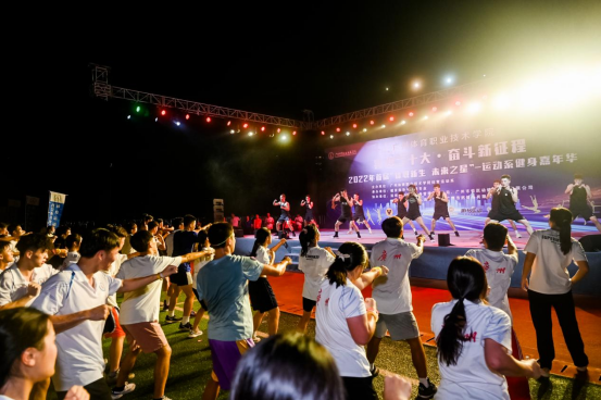 本网讯 9月23日,广州体育职业技术学院2022年首届“体职新生 未来之星”体育运动系健身嘉年华活动在学院东校区田径场举行。学院副院长张苹,教务处处长赵立江、学生处处长黄克铭、体育运动系书记黄绍辉、主任谈群林、副主任谢向阳、副主任吴笑慧、团委负责人明泽雨、体育运动系各专业带头人、教研室主任,2022级新生班主任、全体辅导员、2022级全体新生参加活动。