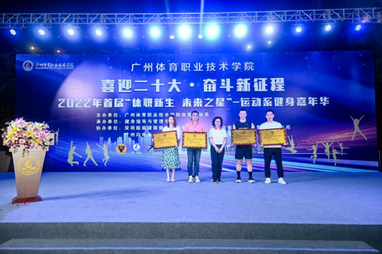 在启动仪式中,学院副院长张苹为优秀校企合作单位颁发牌匾。体育运动系主任谈群林为活动致开幕辞,勉励2022级新生努力学习、创造属于他们的辉煌。刚刚载誉归来的学院健身健美代表队带来了“健身健美表演—冠军的力量”;学院跳绳协会带来的花样跳绳表演,健美的身材展示和高难度的空翻跳引来全场一片赞叹声。
