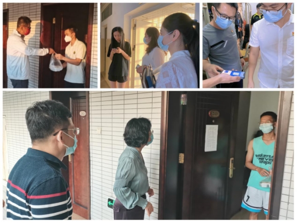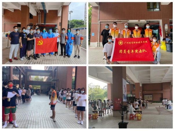 师生齐心协力抗疫,守护校园安全。学生处、团委全体党员干部参与学院东校区历次核酸检测学生秩序维护,今年以来组织学生参加核酸检测工作80多次,发动学生志愿者500多人次,完成学生核酸检测16万人次。发挥学工干部先锋模范作用,全面落实学生防控排查和健康监测,建设学生核酸团体码,快捷查看团体成员的健康信息,提高了学生管理效能。成立学生文明督察队定期检查学生宿舍,提醒关大灯、养成良好就寝习惯;组织学生志愿者参与饭堂打包分餐、统一领取外卖、课前电梯文明站岗,中午晚上校园安全巡逻等志愿服务;组织学生创业团队为运动员、高职学生理发;党员师生众志成城,抗击疫情。