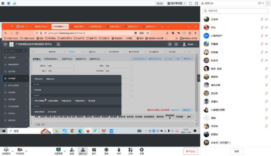 本网讯 3月24日下午,广州体育职业技术学院召开2023年度春季学期高职校外教学点教学管理线上会议。教务处、体育运动系、体育产业系、体育保健与康复系专兼职辅导员及相关教师,广州力美健、广州凯越、广州智佳、广州德迅、广州奥绅、广州黑狮子、广州亘太极、潮菁体育8个校外教学点及超星公司相关人员共30人参加了此次会议,会议由教务处副处长邓娉主持。会上,各校外教学点汇报本学期开学以来教学工作情况及存在问题,教务处针对存在问题一一进行了解答和交流。会议还邀请了广州超星信息技术有限公司的培训讲师对学院高职扩招在线学习平台的教学管理端、教师端和学生端常用模块功能进行线上演示培训,并根据各校外教学点提出的日常使用问题逐一答疑解惑。