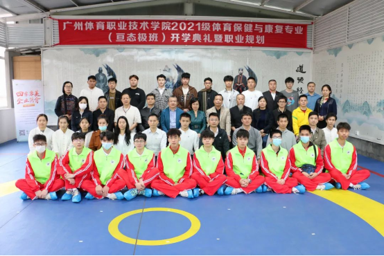 本网讯 3月26日,广州体育职业技术学院2021级体育保健与康复专业(亘态极班)开学典礼在广州亘太极中医诊所举行。学院领导、亘态极实训基地负责人、邀请嘉宾及亘态极班学生出席了开学典礼。