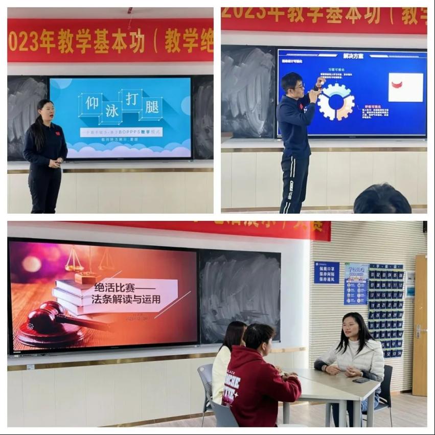 本网讯 为进一步提升青年教师的教学能力和业务水平,夯实青年教师的教学技能,12月28日,广州体育职业技术学院体育运动系举办2023年教学基本功(教学绝活展示)大赛。赛前,体育运动系成立专项工作领导小组,组建了由系党政负责人,教工支部书记、专业带头人、高级职称教师组成的评审委员会,对比赛进行了系统的设计和精心筹备,参照教务处相关标准拟定比赛规则、组织评委会议,准备比赛物资,做好后勤保障等,为比赛顺利进行保驾护航。比赛内容分为教学绝活展示和现场答辩两部分,在展示教学绝活环节中,众选手精神饱满、讲解生动,纷纷展示精彩绝伦的拿手绝活;在现场答辩阶段中,选手们答辩思维清晰,条理分明回应评委提问。评委团针对每位参赛教师的具体问题进行点评,并提出了指导性建议。经过一番激烈比拼后,纪昌飞老师和赵媛媛老师荣获一等奖,期待他们在后续比赛中有精彩的表现,取得佳绩。