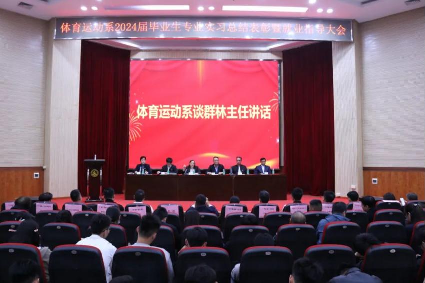 本网讯1月10日上午,广州体育职业技术学院体育运动系在西校区阶梯会议室召开2024届毕业生实习总结表彰暨就业指导大会。学院教务处、学生处负责人,13家优秀实习基地嘉宾,体育运动系全体教职工及2024届全体毕业生参加会议,会议由体育运动系副主任吴笑慧主持。会上,运动训练专业带头人张成龙副教授进行了本年度的实习情况总结。教务处处长赵立江、学生处副处长彭凡为获得表彰的13家优秀实习基地颁发了牌匾,体育运动系负责人为45名获得优秀实习生称号的学生颁发了荣誉证书。