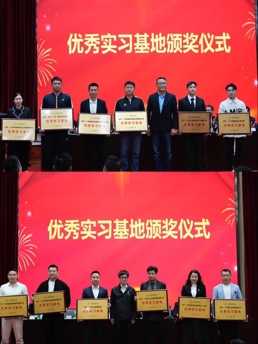 优秀实习单位代表广州市凯越体育发展有限公司、广州鸿星体育健身有限公司、广东时力健身集团企业负责人、优秀实习生代表2021级朱慧玲、邓贤东同学分别在会上作了发言和分享。