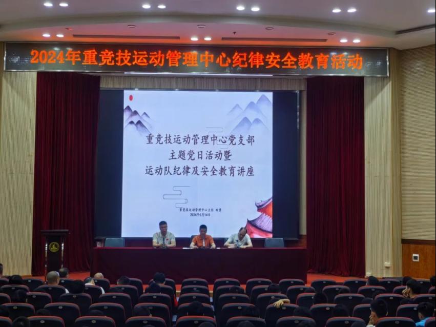 本网讯 为加强党员干部日常教育管理,提升教职工和运动员纪律意识,强化安全教育,5月14日下午,广州体育职业技术学院重竞技运动管理中心在西校区阶梯会议室举办党支部主题党日活动暨运动队纪律及安全教育讲座,重竞技运动管理中心全体教练员、运动员及工作人员参加。