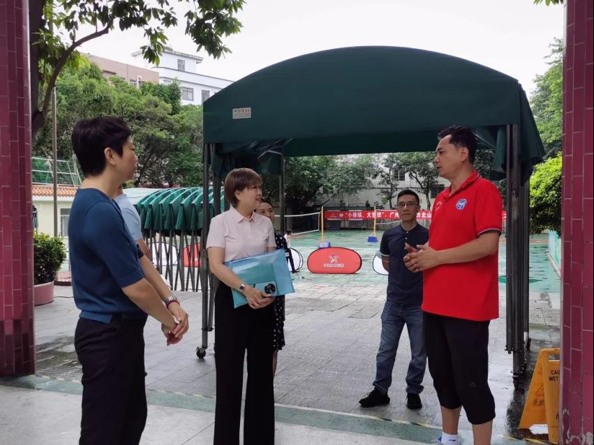 本网讯 6月6日,广州市体育彩票管理中心主任唐瑞勤带队,来到广州体育职业技术学院排球队网点学校北山小学开展实地调研,深入了解校园排球推广普及、体育后备人才培养情况,推动社会力量支持排球运动高质量发展。