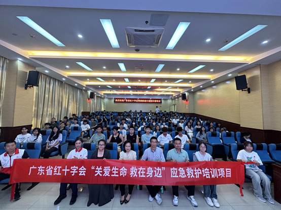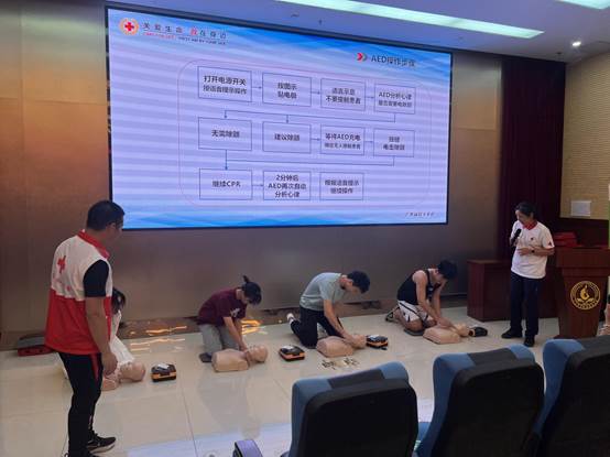 此次培训由广东省红十字会胡婉仪老师主讲,罗友梅老师辅讲。主要对红十字运动、救护概论、心肺复苏术和AED的使用,以及气道梗阻、急性心肌梗死、脑卒中等常见急症的应急处理开展了培训,培训分为理论讲授、直观模拟、现场实操三个方面。红十字会老师用心肺复苏模拟人和AED训练机,现场演示了正确的胸外按压、人工呼吸方式和AED的使用方法,使参加培训的学员们较为系统地掌握了心肺复苏等现场紧急救援知识和正确处理方法,为应对紧急病患赢得“黄金”救援时间奠定了良好的急救基础,进一步提升了学生和老师们紧急救护的能力。