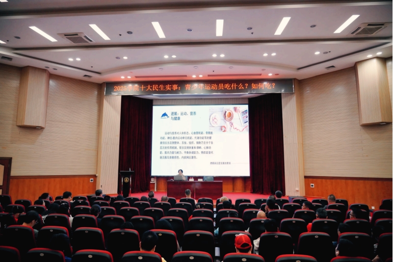 本网讯 为贯彻落实国家全民营养周倡议,推动青少年运动员科学膳食管理,广州体育职业技术学院于5月28日在西校区阶梯会议厅成功举办“青少年运动员吃什么?如何吃?”专题培训活动。本次活动由学院体育教育科研中心联合训练竞赛处、重竞技运动管理中心共同主办,旨在提升教练员和体育工作者对运动员营养健康的科学认知,助力青少年运动员全面发展。