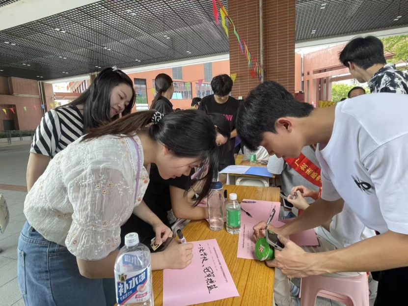 活动现场气氛热烈,吸引了大批同学尤其是正在军训的2025级新生积极参与,许多教职工也踊跃加入。师生们用普通话朗诵中华经典诗文、十五运会和残特奥会的宣传口号;积极参与十五运知识问答;一笔一划书写校训及对学院的美好祝福。