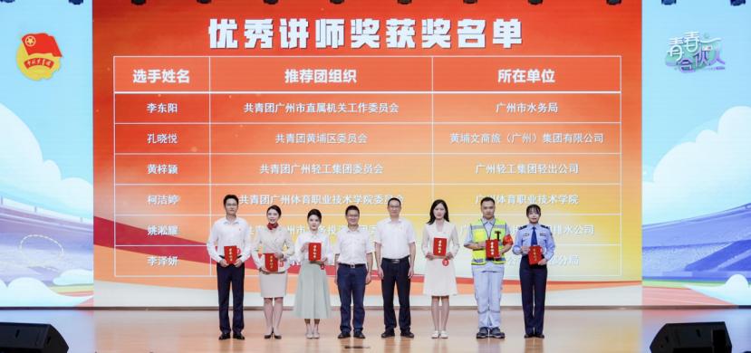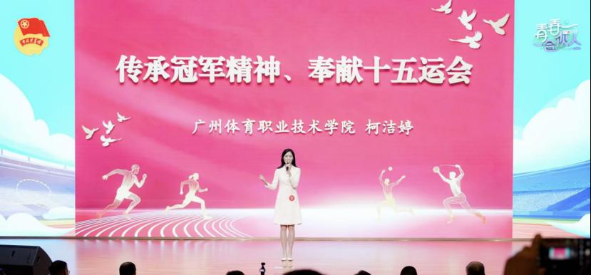 本网讯 9月19日,由中共广州市直属机关工作委员会、共青团广州市委员会、广州市社会科学界联合会主办的“我们是广州青春合伙人”第八届广州团干部讲党团课决赛在广州图书馆举行。经过激烈角逐,广州体育职业技术学院团干部、体育运动系辅导员柯洁婷团队展演的《传承冠军精神、奉献十五运会》党团课,荣获“优秀讲师”称号;共青团广州体育职业技术学院委员会荣获“优秀备课团队奖”,两个奖项均在我院参与广州团干部讲党团课比赛中实现突破。
