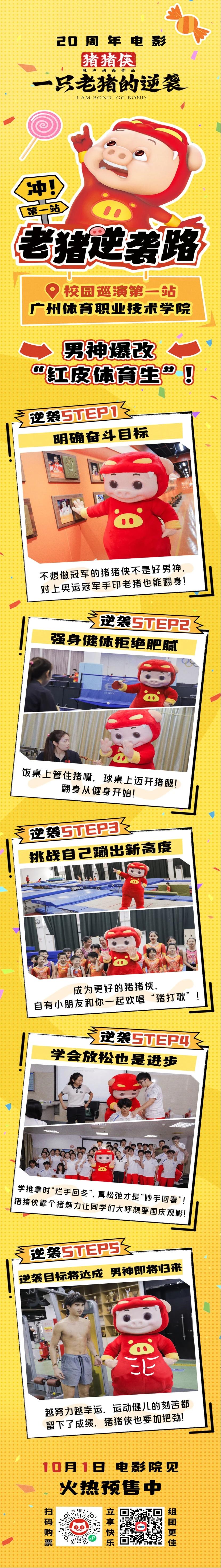 本网讯 9月25日,粤产电影国民级 IP 猪猪侠亮相广州体育职业技术学院,开启一场热血洋溢的体育知识之旅!这个承载着无数人童年记忆的卡通形象,先后走进运动康复推拿课堂、健身健美实训室、乒乓球队与蹦床队训练场地,在校史馆追溯冠军足迹,于学生食堂感受烟火气息,用接地气的互动方式点燃师生热情,让体育精神在欢笑中传递。