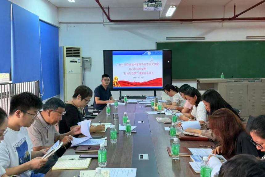 本网讯 为了更好的推动党的理论创新成果第一时间进教材、进课堂、进学生头脑,推进思想政治教育教学工作内涵式发展,进一步提升学校“形势与政策”课程教学质量和水平,9月29日上午,广州体育职业技术学院“形势与政策”课程全体专兼职教师在综合楼1115马克思主义研修室举行了集体备课研讨会。