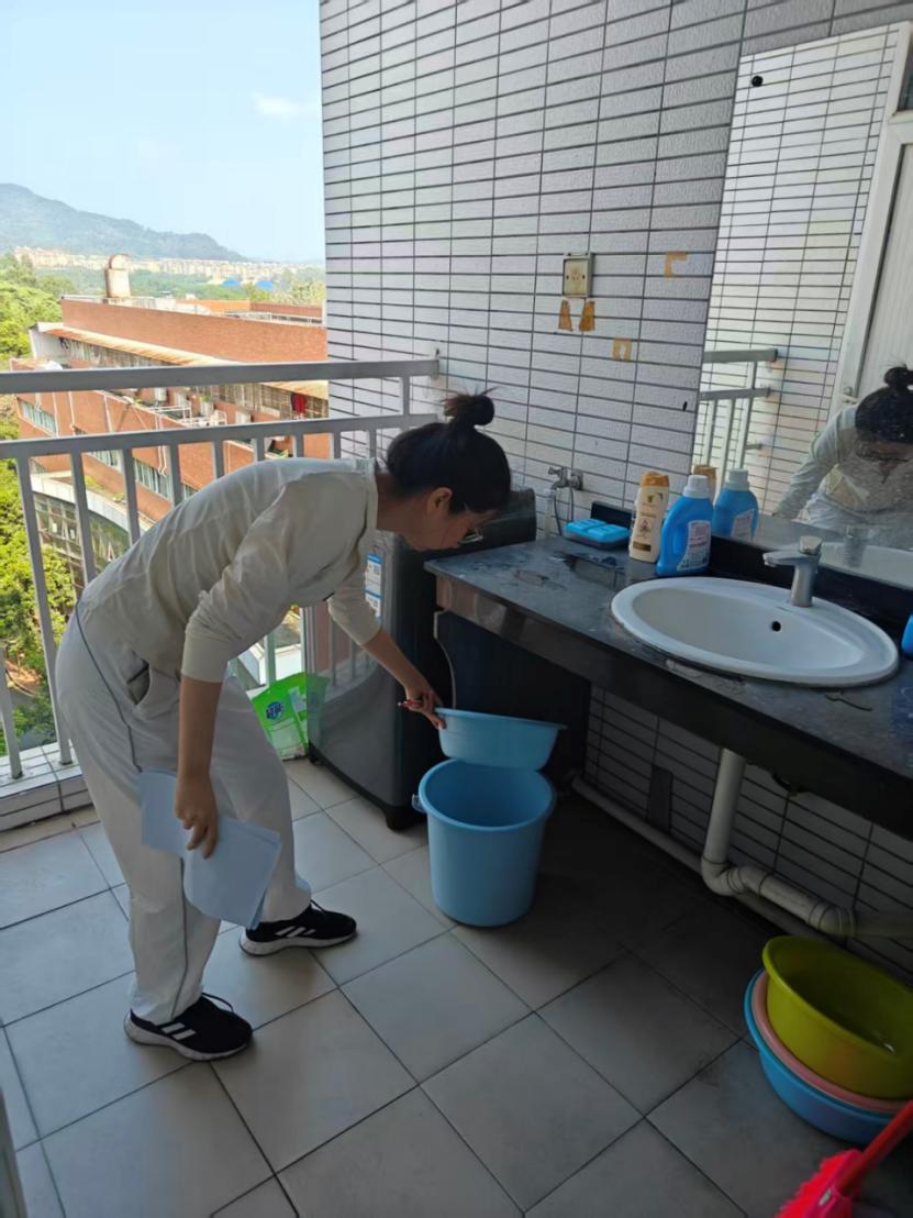 学生处全体人员、各系分管学生工作副主任、全体辅导员到学生宿舍楼下分组检查学生宿舍卫生、积水情况,以保障师生健康和校园安全。积极开展校园环境卫生大扫除,对学生宿舍重点清理花盆托盘、饮水机接水槽、空调排水管、绿化带、排水沟等易积水区域,消除蚊虫孳生环境。更换水养植物用水。同时,加强校园纱窗、纱门等防蚊设施的检查与维护,防止蚊虫进入室内。