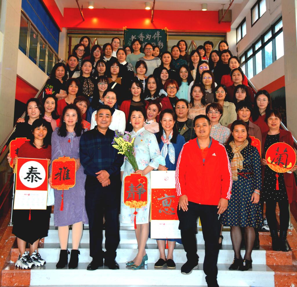 学院附属体育运动学校校长张瑜和图书馆馆长何海为参加活动的女教师们现场颁发由原任广州市副市长陈传誉提笔的墨宝奖品。