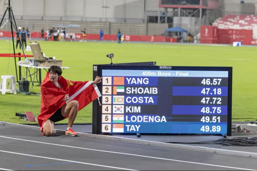 本网讯 10月24日,在巴林麦纳麦举办的亚青会田径赛事中,我国田径健儿传来捷报。在备受瞩目的男子400米决赛中,广州体育职业技术学院培养输送的年仅15岁广州小将杨嘉发挥出色,以46秒57的卓越成绩一举夺冠,为我国代表团再添一金,并刷新了赛会纪录。