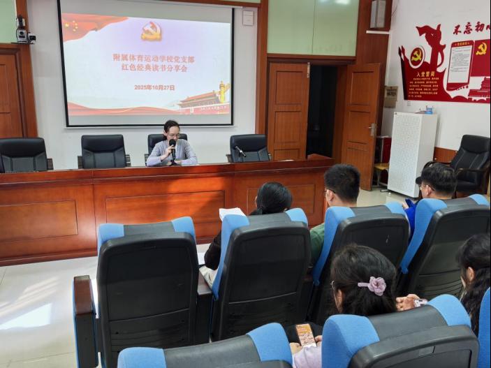 本网讯 为进一步强化党员教育培训,深化党员教师对革命精神的理解,筑牢育人初心,10月27日,广州体育职业技术学院附属体育运动学校党支部组织召开党员大会,开展红色经典读书分享会。四位党员教师结合自身阅读感悟与教育教学实践,分享读书心得,在交流中传承红色基因,凝聚奋进力量。