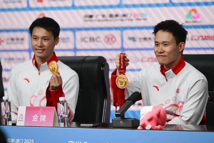 拿到这块金牌,陈艾森激动地表示:“这次全运会经历对我而言是人生中很宝贵的一堂课,虽然恢复训练很辛苦,但是还是坚持了下来,拿到金牌。我还要感谢谢思埸,他是一个很自律的人,有他在旁边我都不敢偷懒,真心感谢各位队友的陪伴。”