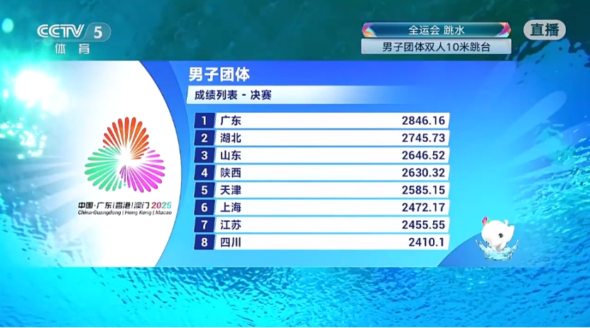 最终,经过双人3米跳板、10米跳台、3米跳板和双人10米跳台四个单项的激烈角逐之后,广东队将领先优势保持到最后,一举夺魁。