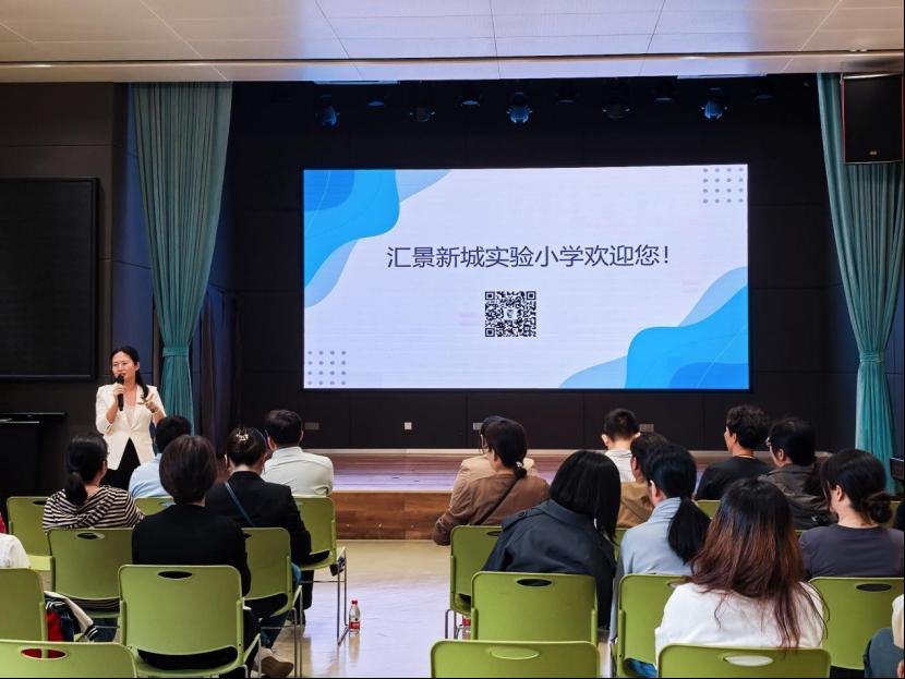下午14点,学院附校教师一行抵达汇景新城实验小学进行交流。徐无名校长介绍了学校“让每位学生成为最好的自己”的办学理念,以及由基础课程、融合课程、社会课程构成的课程体系,强调跨学科和项目式学习(PBL)。特色育人方面,学校创建了独特的混龄“家族”制管理体系,让孩子们在模拟社会角色与协作中培养责任感和团队精神。学校还定期举办话剧节、“十元一天”生存挑战等全员参与的特色活动,确保每个孩子在体验式学习中全面发展。