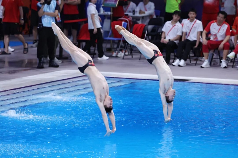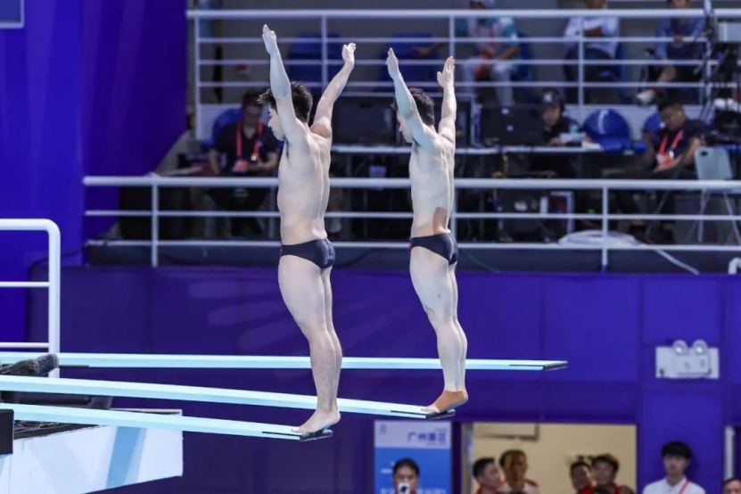 黄博文搭档奥运冠军谢思埸,以完美的发挥从开始就一直领先。最后以447.54分顺利夺冠,为广东跳水队拿下本届全运会的第四枚金牌。