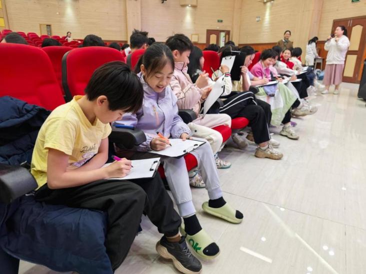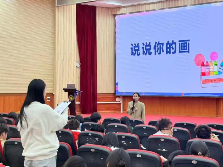在小学组“认识自我,自信自强”专题讲座中,讲师通过互动游戏、奥运冠军孙颖莎的成长故事的环节,引导学生建立自信,孩子们在绘画表达和齐唱《相信自己》的歌声中,筑牢心理健康的根基。