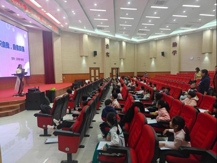 小四、小五年级学生认真聆听《认识自我,自信自强》专题讲座