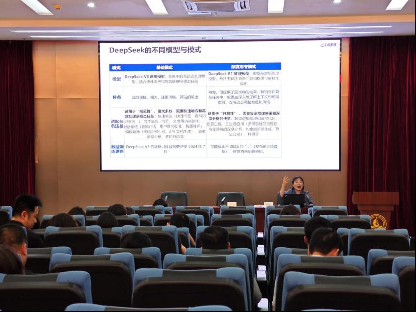 九紫AI学院主任廖熠曦,以“DeepSeek突围,教育职业新引擎”为题,从AI认知重塑、场景应用爆破、AI认知升级三个维度讲授了AI如何在教育行业中提升教学和管理效率,并现场运行DeepSeek,演示如何通过DeepSeek助力传统教学场景革新。