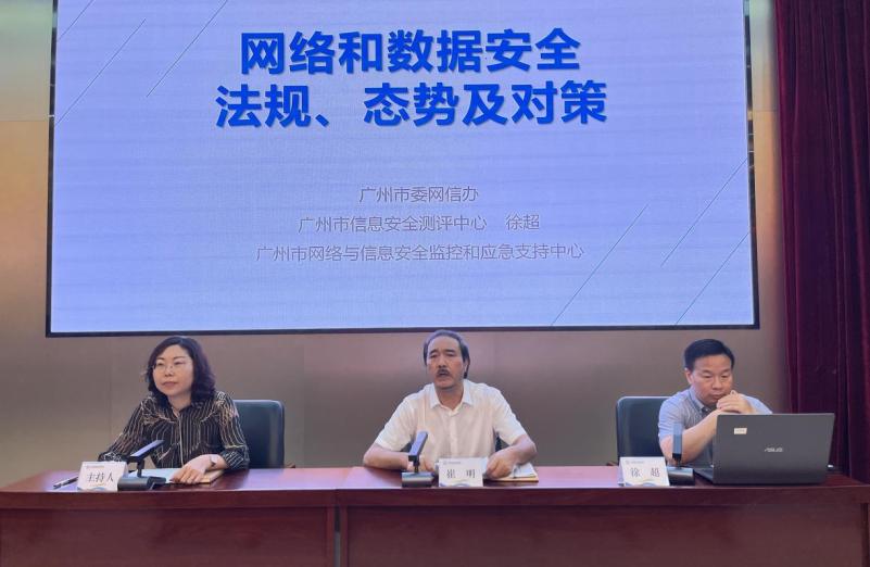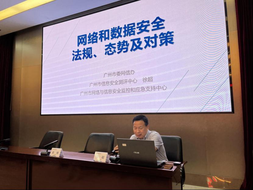 广州市委网信办广州市信息安全测评中心副主任徐超,以“网络和数据安全法规、态势及对策”为题进行授课,围绕网络和数据安全重要性、相关法律和法规解读、网络安全工作机制、网络安全态势分析及应对策略五个层面内容,详细阐述了国内及广州市的网络安全最新态势,结合案例经验分享,让参会教职工切实感受到网络安全始于心、践于行。
