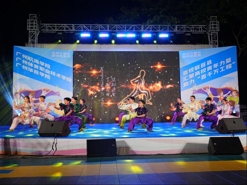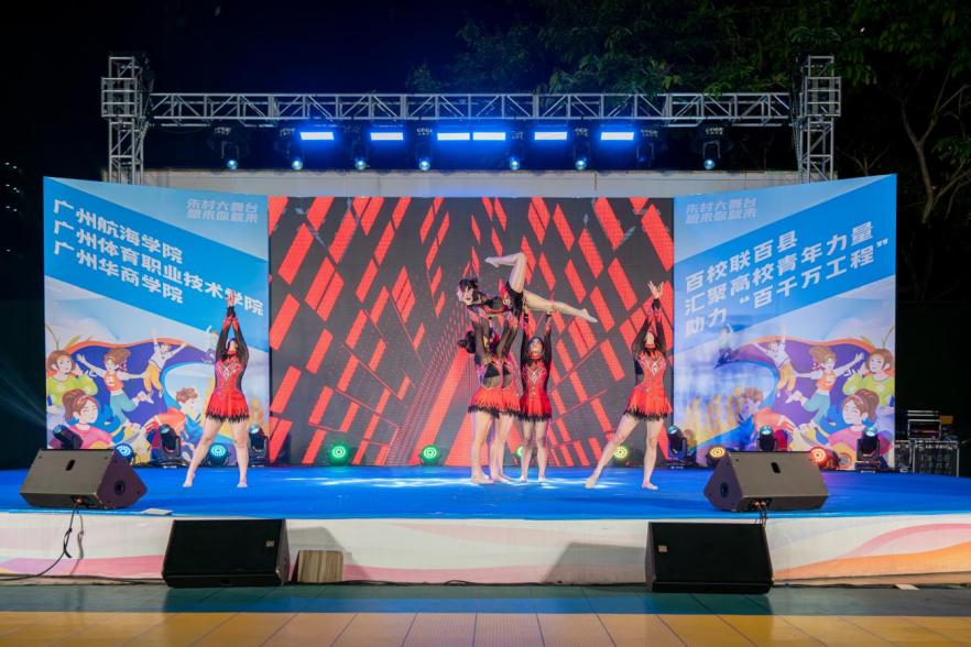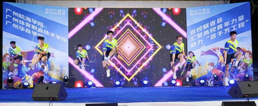 本网讯 为深入实施“百县千镇万村高质量发展工程”,4月29日,广州市增城区“百千万工程”指挥办在增城区朱村街道举行“青春心向党 建功新时代”暨增城区“双百行动”五四青年节文艺汇演,广州体育职业技术学院作为承办单位之一参加活动并进行了体育展示。增城区委副书记、政法委书记李永盛,区委常委、宣传部部长廖平,广州航海学院党委副书记胡命杰,广州体育职业技术学院党委委员、副院长张苹,广州华商学院党委委员、副校长许娜,区“百千万工程”指挥办、区委宣传部、区教育局、区文广旅体局、团区委等单位代表,学院办公室(党办)、组织人事处、宣传处、团委以及各青年理论学习小组相关负责同志出席活动,与现场观众共同见证了这场青春盛宴。