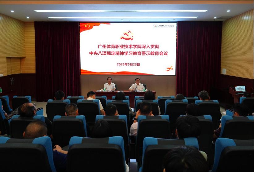 本网讯 5月23日上午,广州体育职业技术学院召开深入贯彻中央八项规定精神学习教育警示教育会议。学院党委副书记、院长李国平作集体廉政提醒谈话,纪委书记林昭雄围绕典型案例开展专题警示教育,与会人员共同观看警示教育片《铁规矩 硬杠杠》。学院领导班子、八级职员以上干部参加会议。